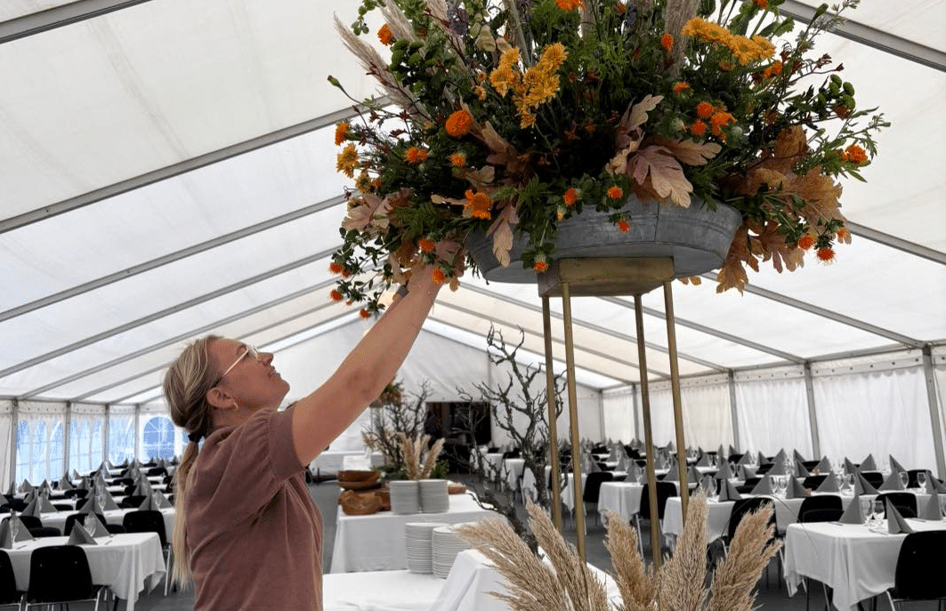 Jeg har en forkærlighed for store fester og firmaarrangementer, og i mit værksted i Nyborg udfoldes kreativiteten med kurser og blomsterbinding.